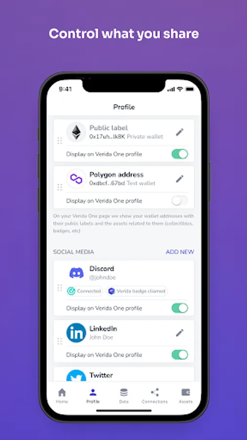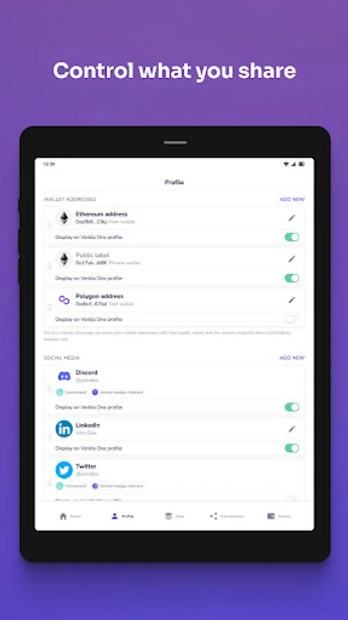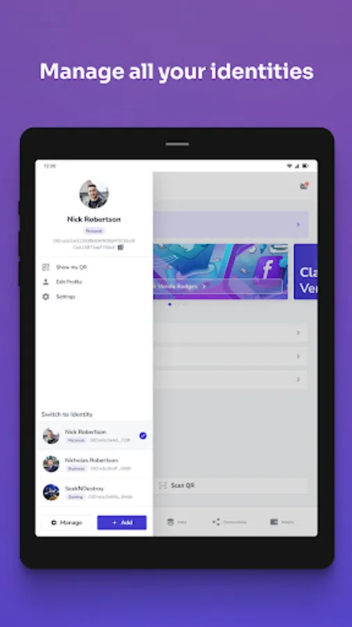 The Verida Wallet is a digital wallet to manage your decentralized identity and personal data to easily access a growing community of applications. Create new blockchain wallets, manage private keys, create a decentralized identity and facilitate single sign on across an ecosystem of decentralized applications. The Verida Wallet ensures you own and control your personal data. Browse your encrypted data and apply a set of delegated permissions when consensually sharing it with other users and services. A secure data inbox built into the Verida Wallet that allows you to safely transfer messages and data to other users or third-party services. Manage your decentralized public profile and consensually share private profiles with third parties.
