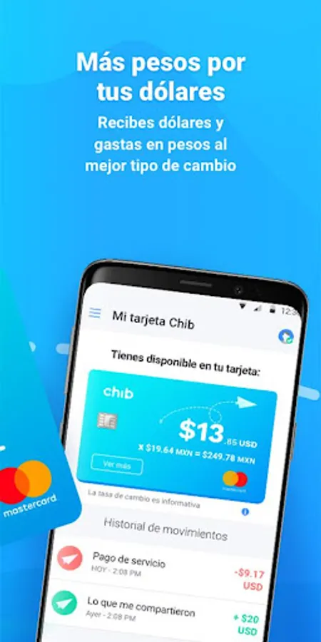 Chib is the new way to share money from the USA to Mexico in a safer, more practical and transparent way! You share money instantly, whenever and wherever you want, and you receive it in Mexico on a Chib card. It can be withdrawn from any ATM or purchased with the Chib card, without having to battle with rows and keys. Chib, whenever you need it.