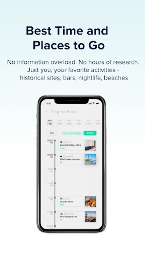 Imagine never having to spend hours figuring out whether Tuesday is a better day to go to that show, or figuring out what's a good place to eat at your current location. After getting to know you through our on-boarding, Viageur will pick up on your location and zero in on what would you enjoy to do and eat with a push of a button.