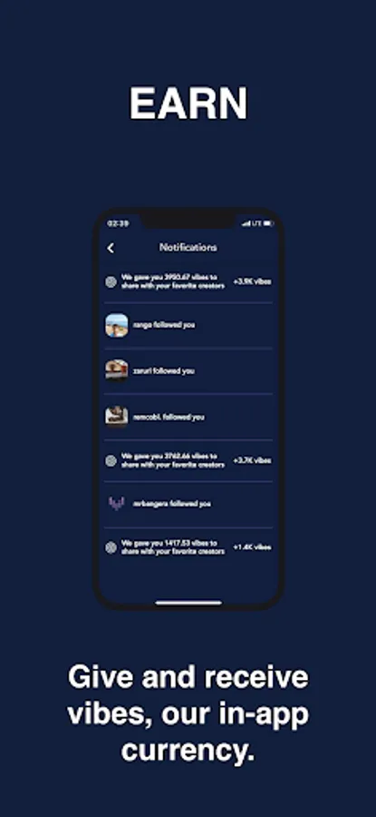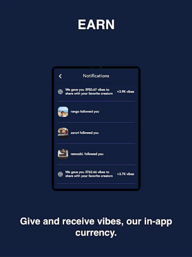 Vybit gives our users (who we call members) Vibes, our in-app currency. Every day. Just for being part of the platform. Members can then share their earned Vibes with their favorite Creators and other members as well as purchase more Vibes to share with their favorite Creators and engage with their communities.