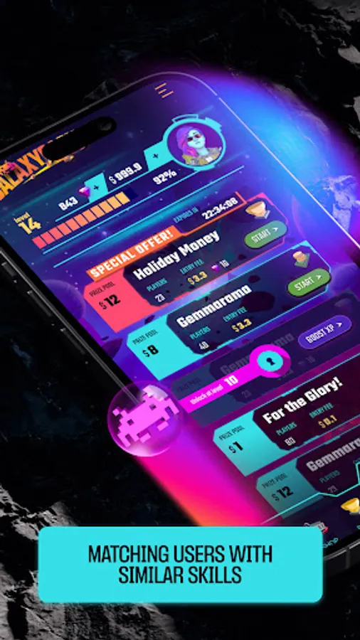 GalaxyCash™ is the newest and best bubble shooter game for your Android device, giving you an exciting, rewarding, and enjoyable gaming experience. With dynamic graphics and intuitive controls, you can put your bubble shooting skills to the test while competing with others against the clock to maximize your score. The more bubbles you pop, the higher your chances of winning! As you progress through levels, prizes become bigger and better - up to $750! So don’t miss out on this amazing opportunity - download GalaxyCash™ today and start shooting for real money!