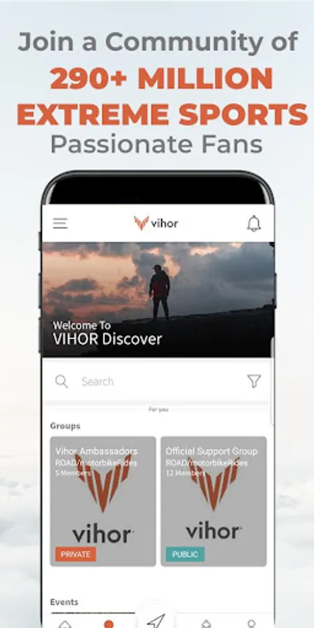 VIHOR covers over 40 active and extreme sports activities and it's completely free to join this global community of adventure sports passionate fans. Have fun and stay motivated!