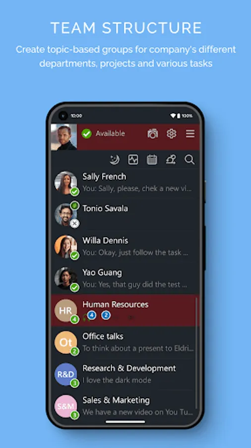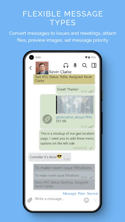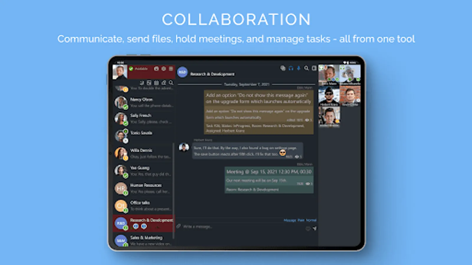 Usual corporate messenger features: