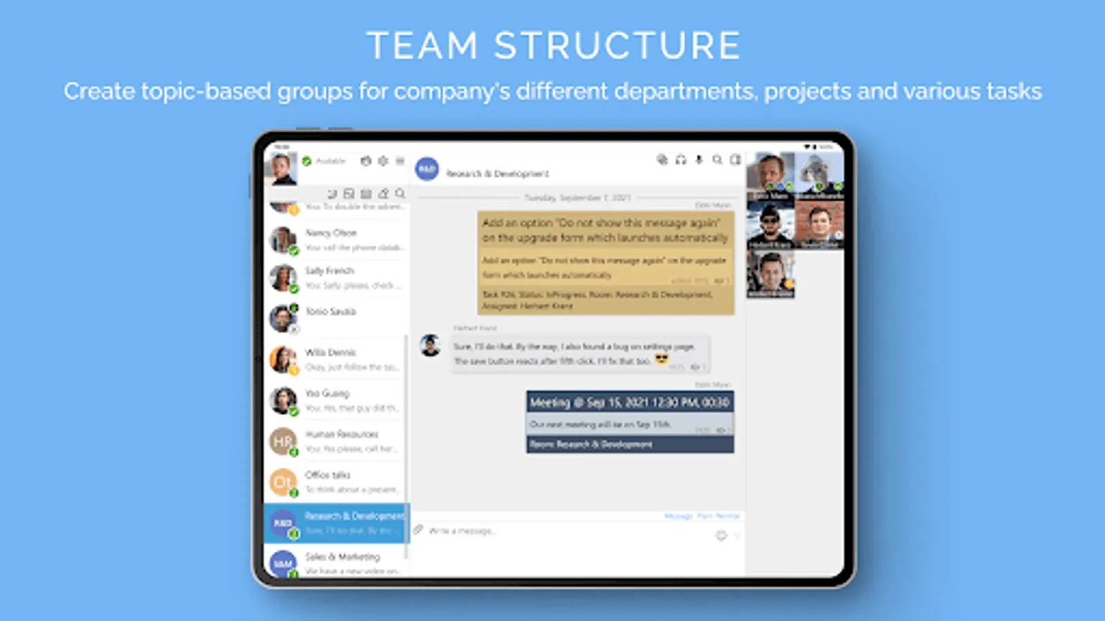 - group topic-based meeting rooms