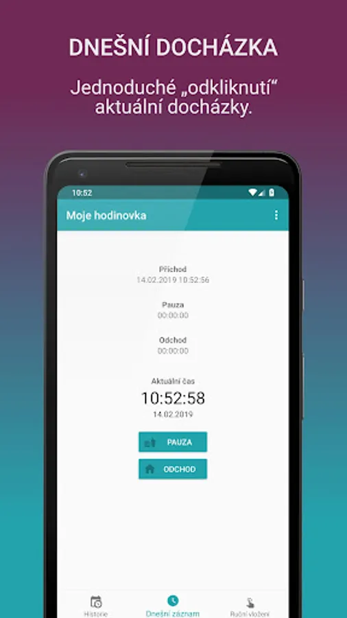 Simple and effective record of attendance and work on the go or home at home office.