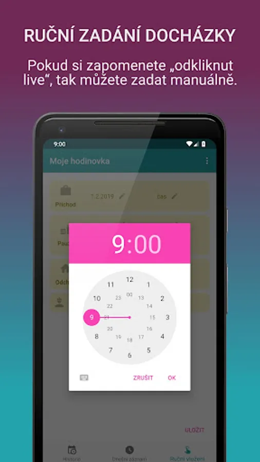 If you are looking for a mobile application to record your attendance at work and whether it is brigade or HPP, "My Watch" application will help you. This is a simple application where you can set parameters as you need. "Kick" really when you come or go out of work or set manually the individual hours worked or shifts.