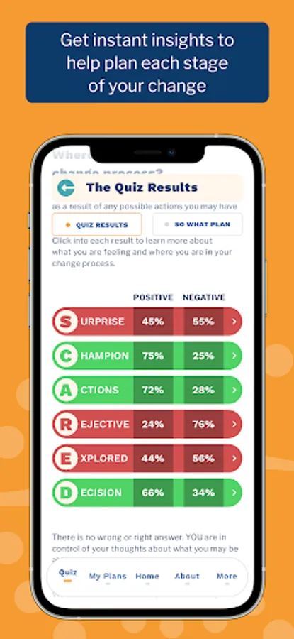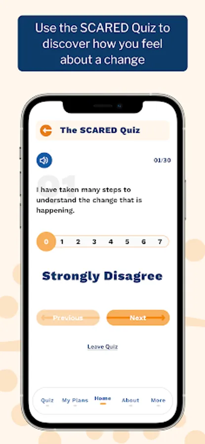 The next part focuses on your feelings and asks you to critically reflect on what is happening to you. By reflecting on each letter, SCARED helps you make an informed decision through your reflection and actions. We do this with a 30-question quiz to understand how you are feeling towards the change. Many questions are similar, and they are intended to be that way. The goal is to stop and reflect on change so you can make the best decision about it.