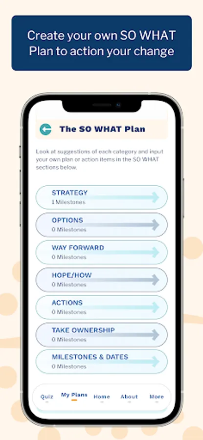 The first part of the app is a series of videos where you can learn about personal change and how you can manage it. Watch the videos to ensure you have an understanding of what is personal change and how SCARED SO WHAT can help you.