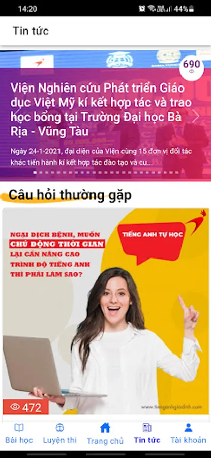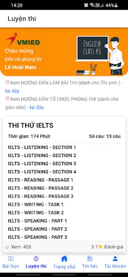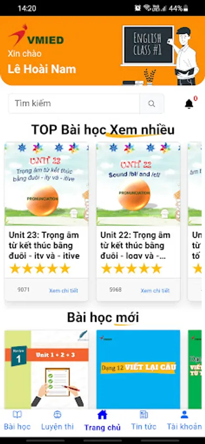 With a friendly interface and interactive learning style, VMIED allows users to learn English through short and interesting lessons. This application provides many functions such as vocabulary review, grammar practice, and listening and speaking skills practice. Tracking learning progress and receiving scores helps users feel motivated and stay motivated