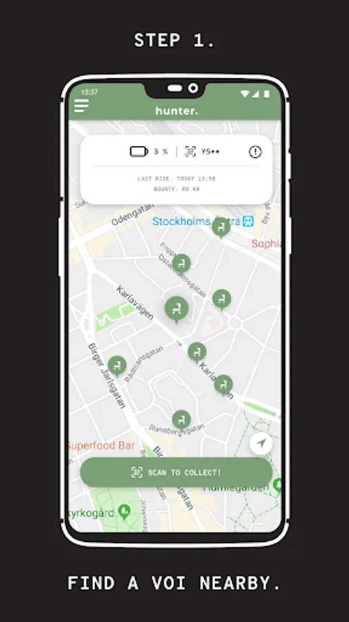 Earn money while you sleep as a Voi Hunter. Just find a scooter, scan it to collect, charge it overnight, and drop it back!