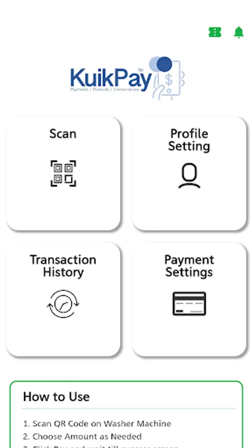 KuikPay is an Internet of Payments (IoPP) for payment at laundromat, vending machines, Crawl machines, Kiddy rides, and more. KuikPay allows you can earn loyalty points, enjoy instant discounts and rewards at participating outlets. more exciting features will be coming soon, including smart listing of outlet and special festive discount , corporate discount and more.