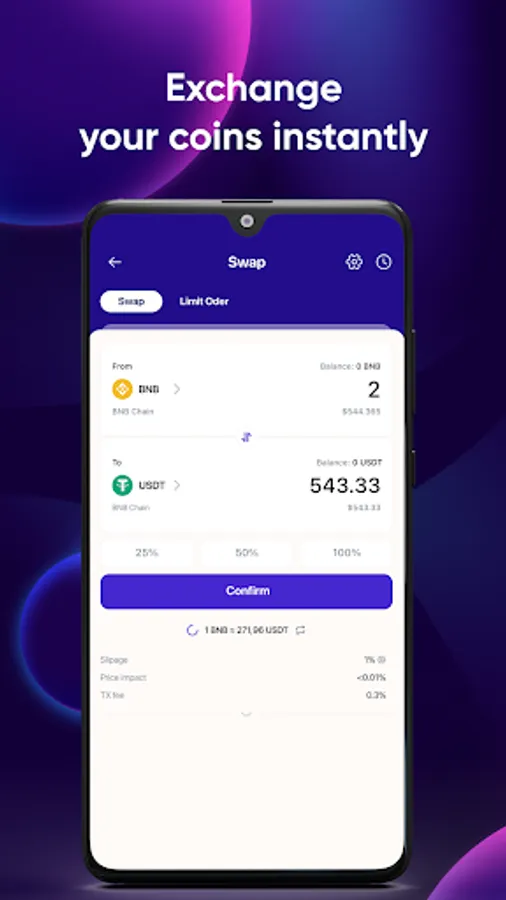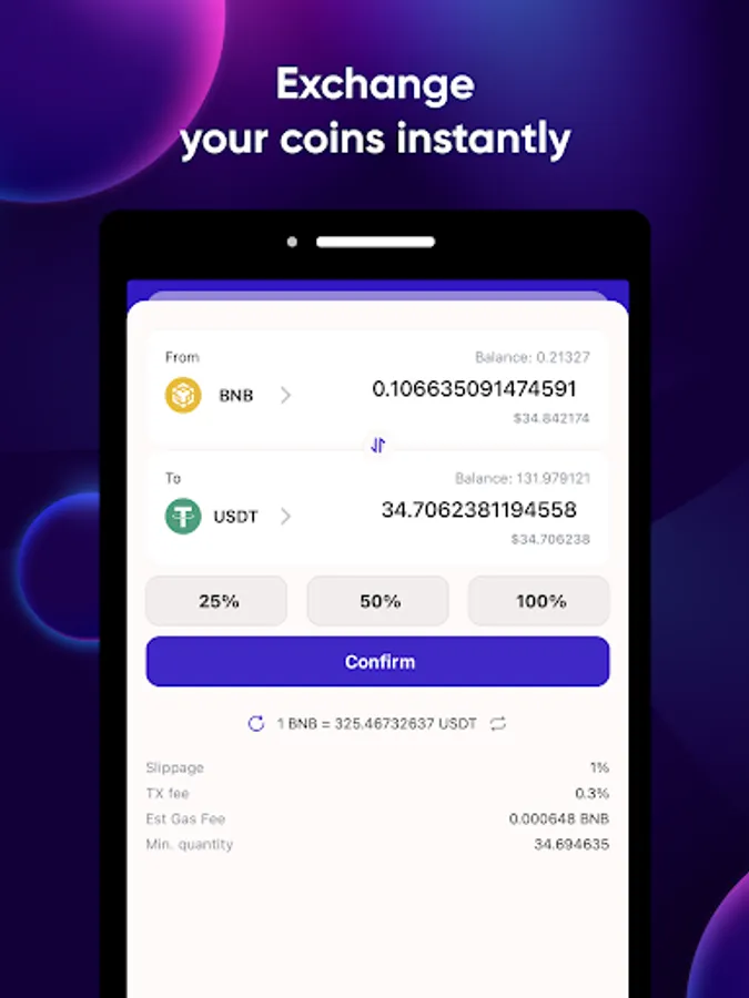 - Easily swap your crypto assets into various popular chains like BNB Smart Chain, Arbitrum, Etherium, Optimism and more.