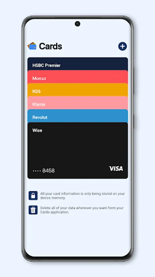 Cards - Mobile Wallet is the best digital card holder to keep your Credit/Debit/Payment cards right in your pocket.
