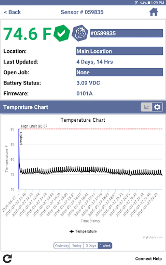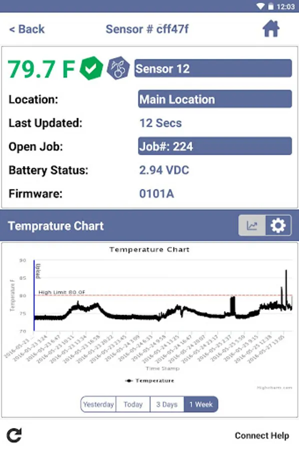 Easy Setup: Set acceptable high / low temperature ranges and temperature durations per FDA guidelines. Assign sensor to a specific food type temperature profile. Create a job. The sensor does the rest, alerting assigned employees or customers of low and high temperature problems wirelessly by email, text, push notification and on-sensor LED. Assign corrective action to responsible employees to correct workflow problems, fix equipment failures or increase employee training.