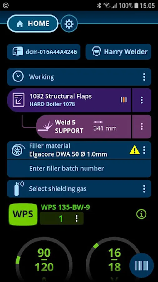 The WeldEye App connects you and your welding machine to your company’s WeldEye cloud service account, where you can select work orders, view digital welding procedure specifications and much more. Everything happens via mobile phone. No paper documents are needed any more.