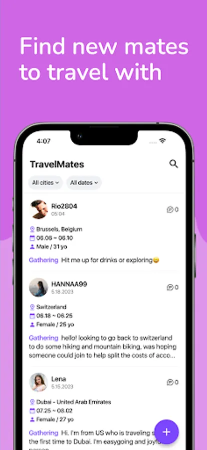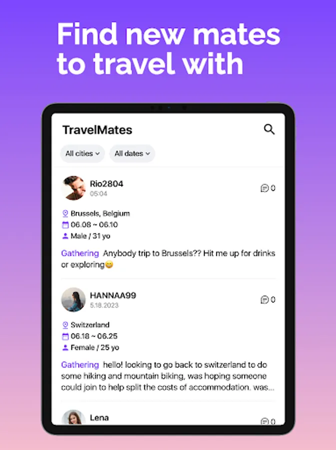 🤩Search friends to travel with based on city and date. And you can communicate closely with the author who find friends with secret comments.
