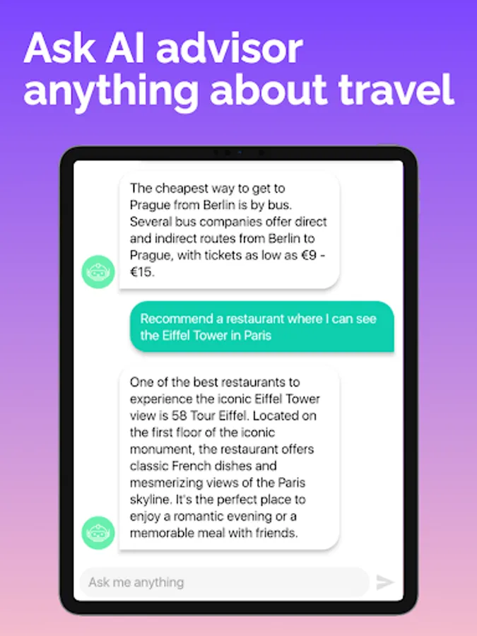 🤓Get personalized travel recommendations and advice from an artificial intelligence powered advisor to plan your next trip.
