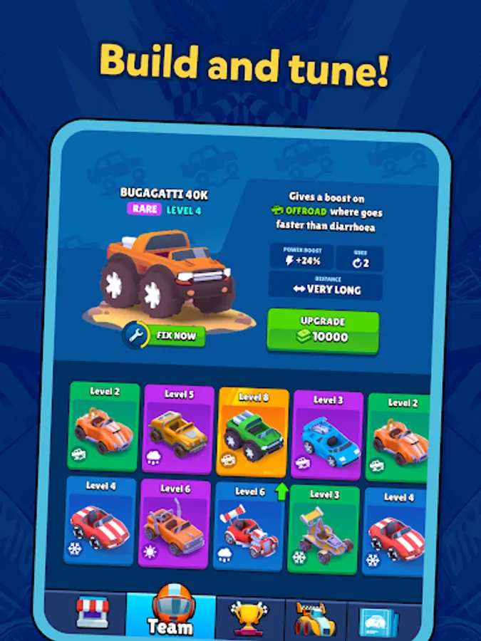🛞ON YOUR MARK… GET SET… UPGRADE! – It’s you who calls the shots here, so now’s your chance to make sure everything is maxed out and there’s no chance that you’ll lose. Make sure your team of drivers gets the appropriate training that each individual needs, and that the cars are fully upgraded and ready to go for race day. With tons of great options for upgrades and customizations, you’ll leave boredom behind in the dust.