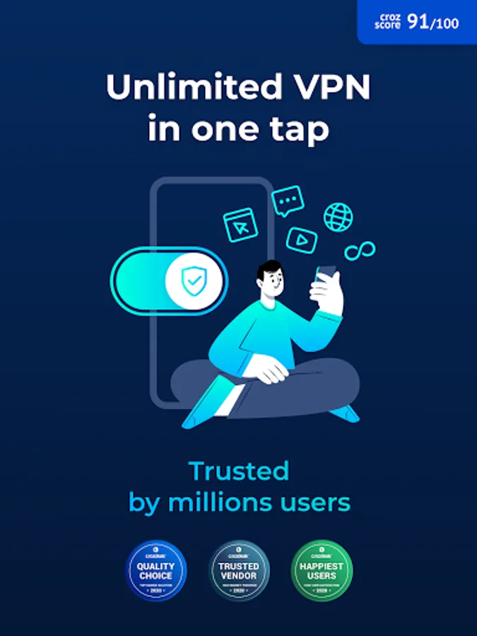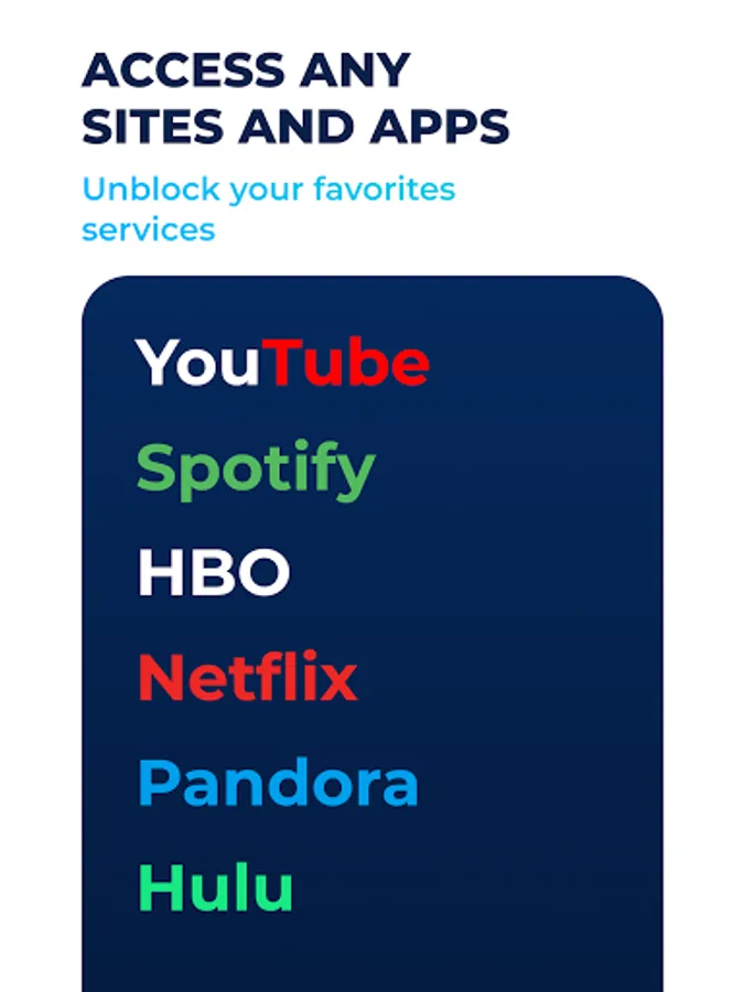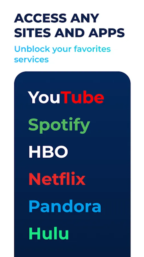 • Keep using your favorite services and websites safety. The high-speed VPN service will make sure no buffering wheel appears on your screen.
