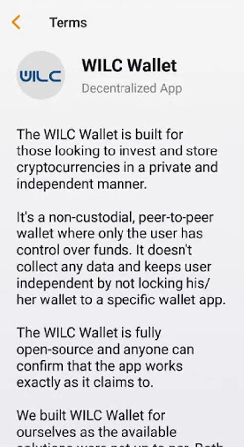 WILC Wallet is a non-custodial cryptocurrency wallet that can store most of the cryptocurrencies and includes everything needed to learn, monitor, grow and exercise exclusive control over the cryptocurrencies in a private and secure manner.