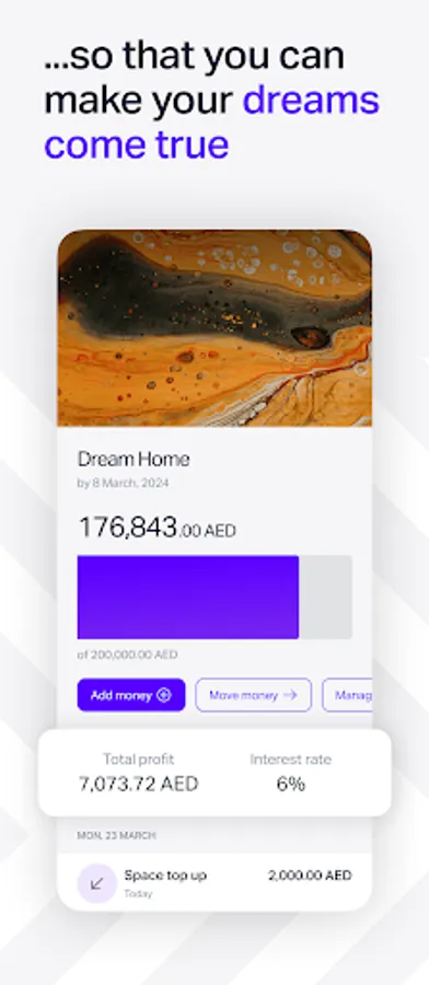 • Earn 6% p.a. interest on Saving Spaces balances above AED 35,000 up to AED 5 million when you sign up to Wio Personal 'Plus' Plan.