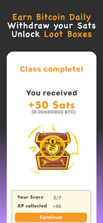 Learning with Yzer feels more like a game than a textbook. Discover Loot Boxes, complete challenges, make new friends, and more... You can withdraw your Bitcoin rewards to any Lightning wallet. Yzer is your free ticket to boost your financial literacy.