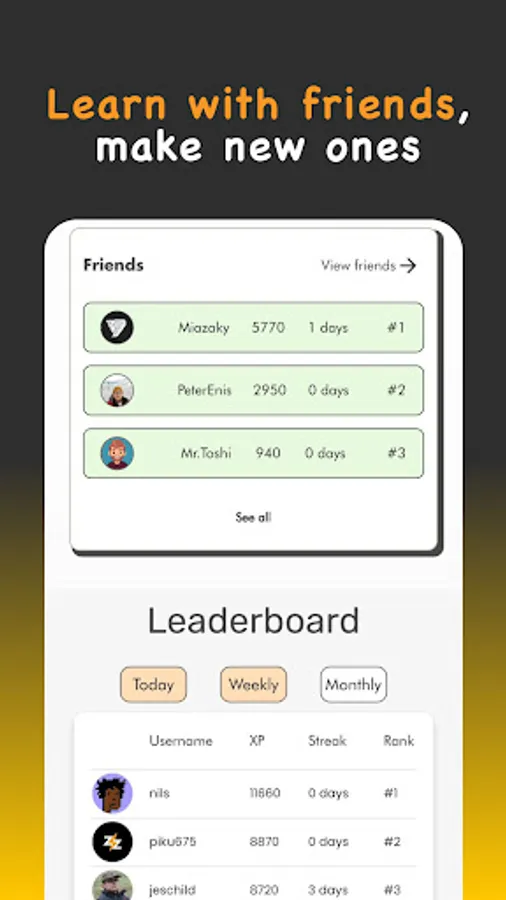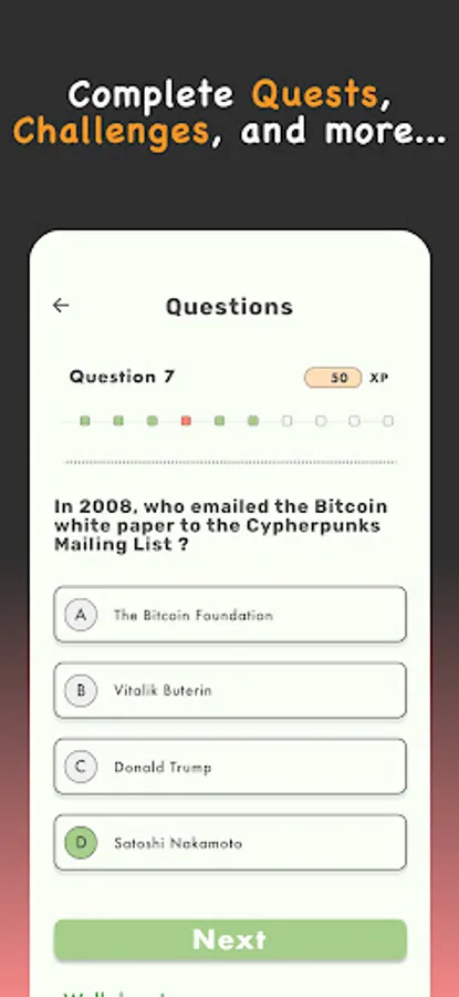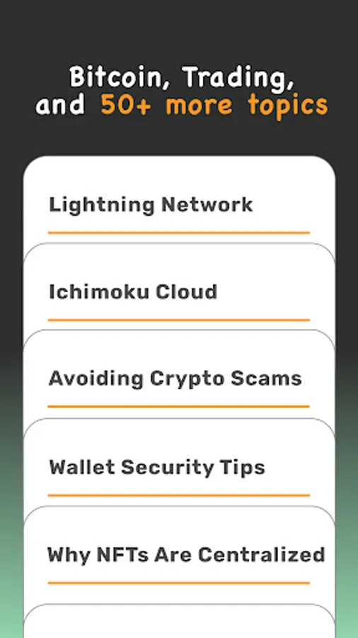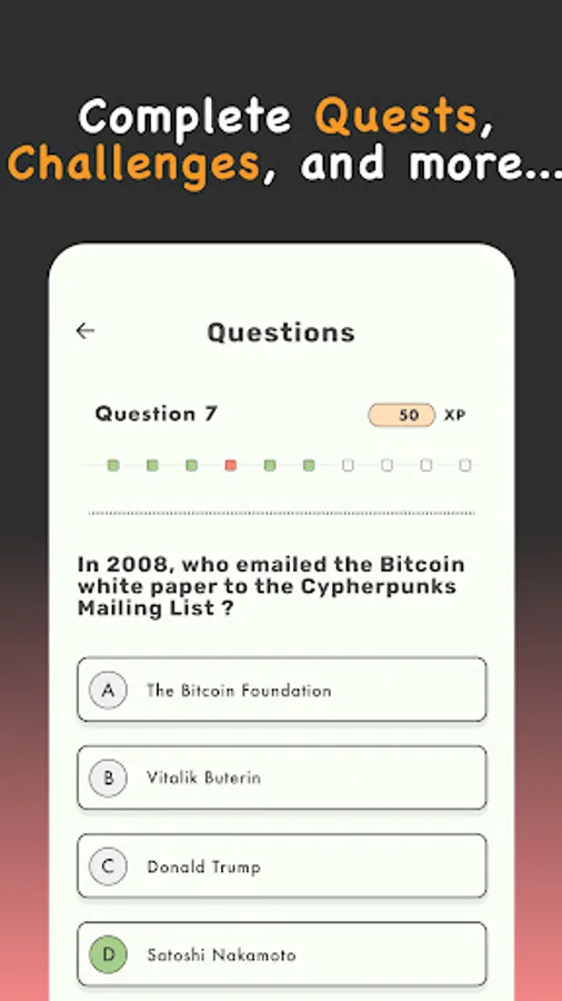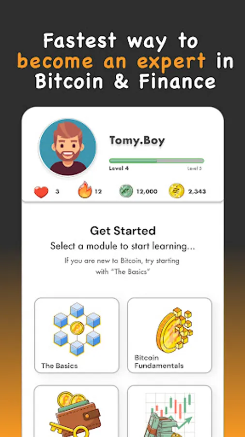 * Gamified - boost your ranking, make friends, win games, and earn bonus Bitcoin rewards. Learning should be fun, not boring.