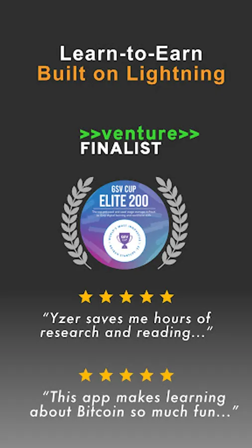 Yzer is a free gamified education app that rewards you with real Bitcoin as you learn about Bitcoin, Money, Blockchain, Stock Markets, and more. We break down complex topics in a simple way by designing classes that are 3 minutes or less, fun to read, and highly visual.