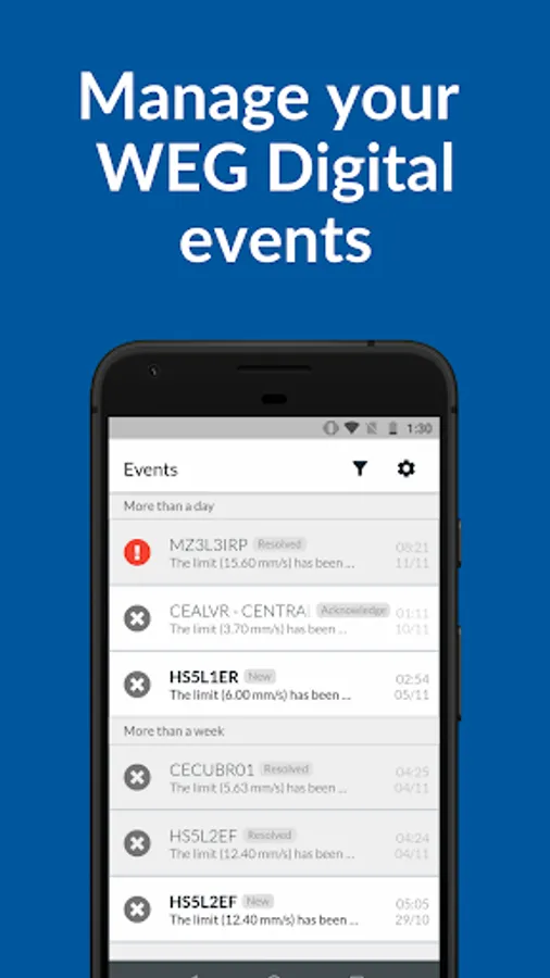 With the new WEG Digital Notify, you can better manage your events from WEG Digital monitoring applications (MFM, TFM, WSM) by receiving notifications as soon as the events are created.