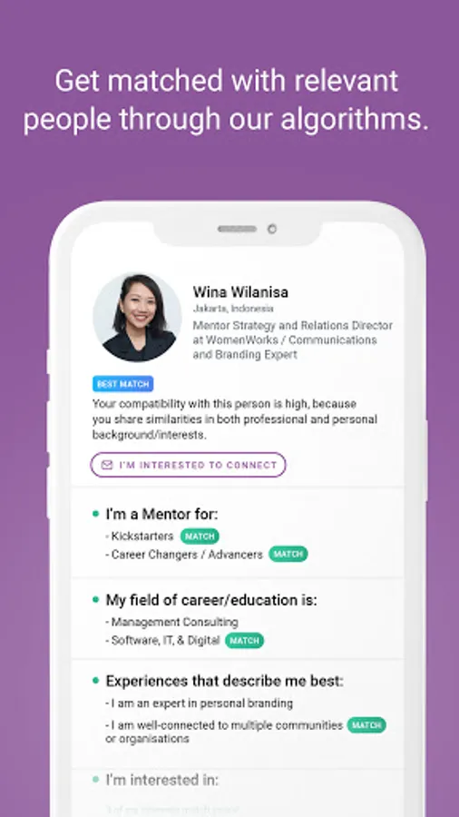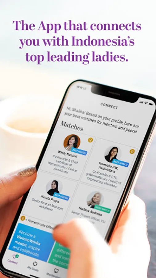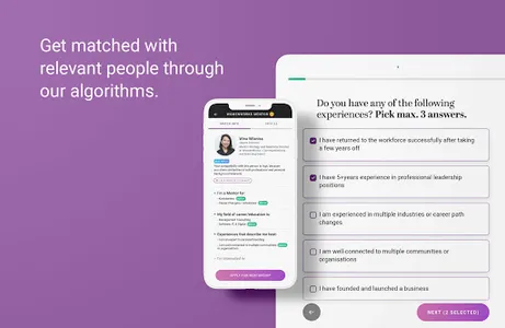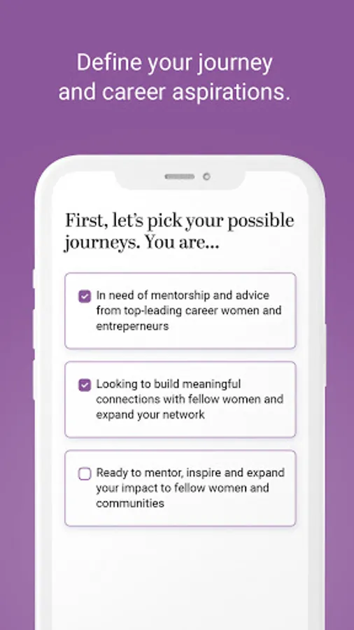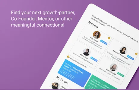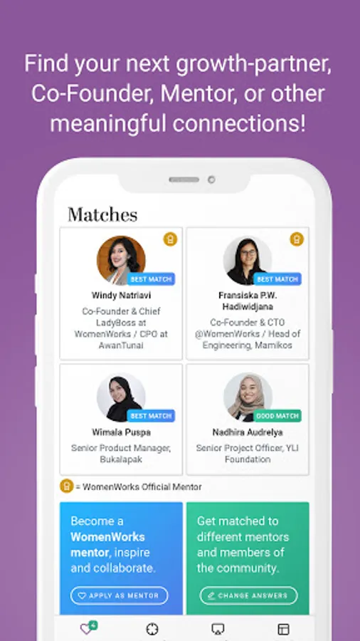 Let us know your career aspirations through the app, and we'll match you with other badass ladies through our sophisticated algorithm. These matches could potentially be your growth partners!