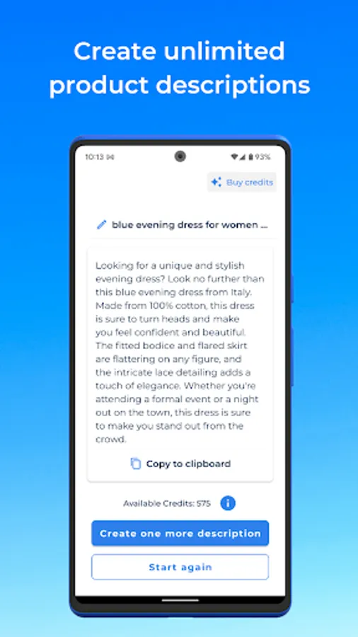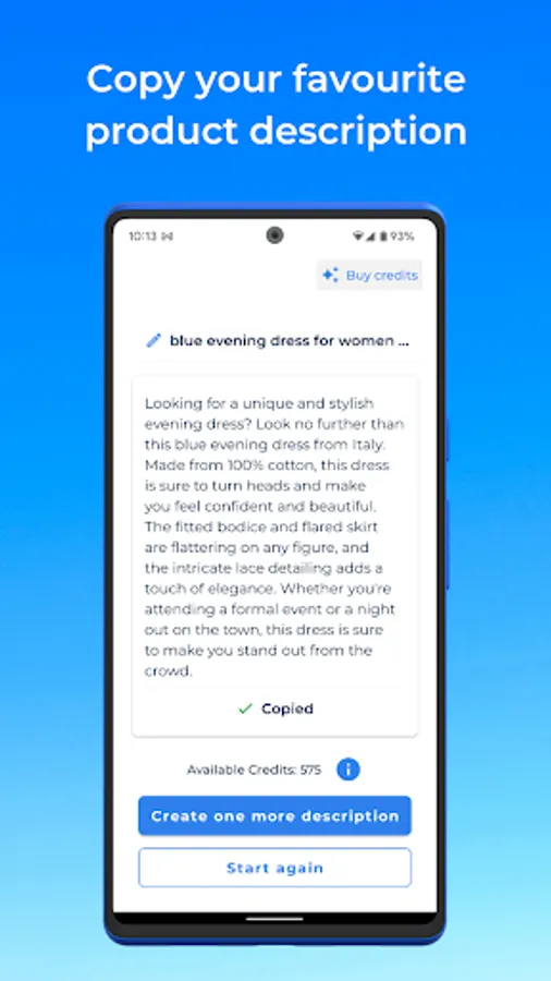 If you do not like the first product description, the app can generate more until you find your favourite one or maybe you can mix two or more descriptions to create the perfect product listing.