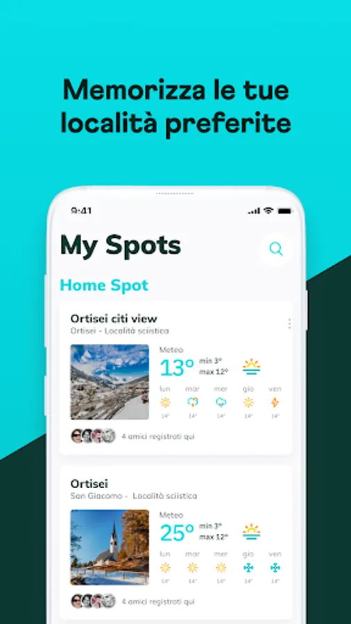 Choose your Home Spot. It will always be first on the list. Are there other places you want to always keep an eye on? Add them to your favorites, so you no longer have to search for them to stay up to date. And if you want to tell someone to join you right there, share the spot.
