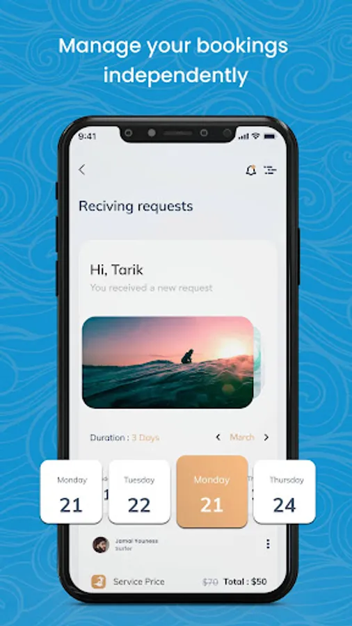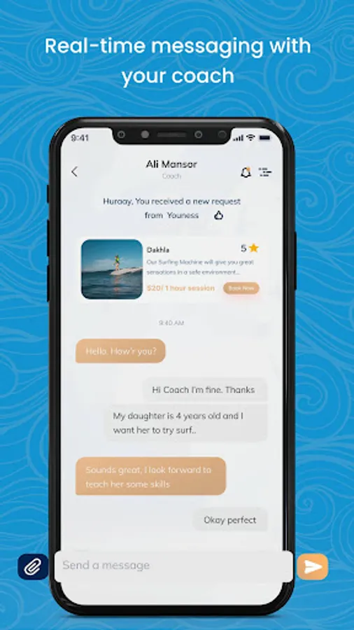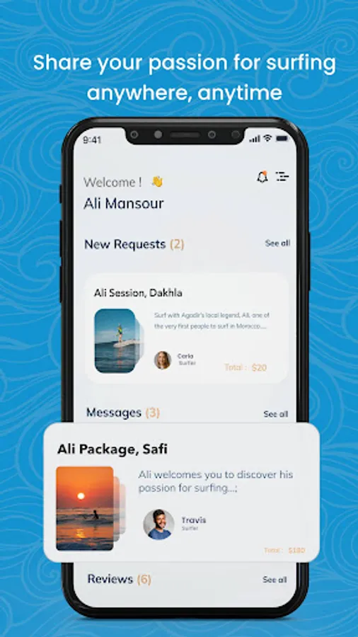 Connecting with your future surf instructor has never been this easy, the app allows you to have full control of your next surf adventure. Once you're done with your session or stay, you can rate your coach and your experience with one click.