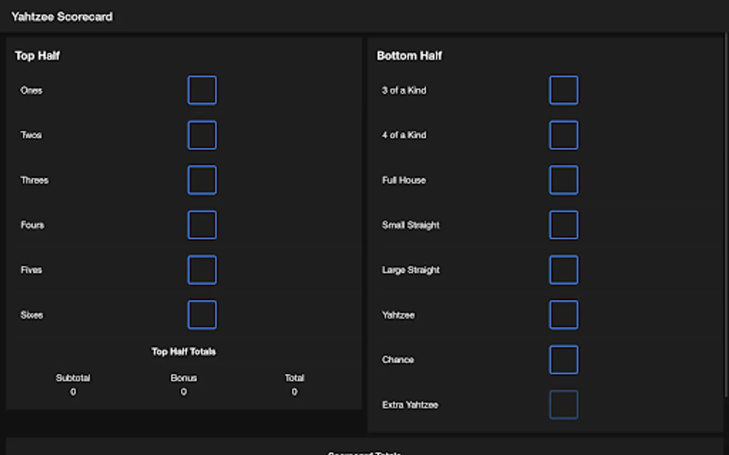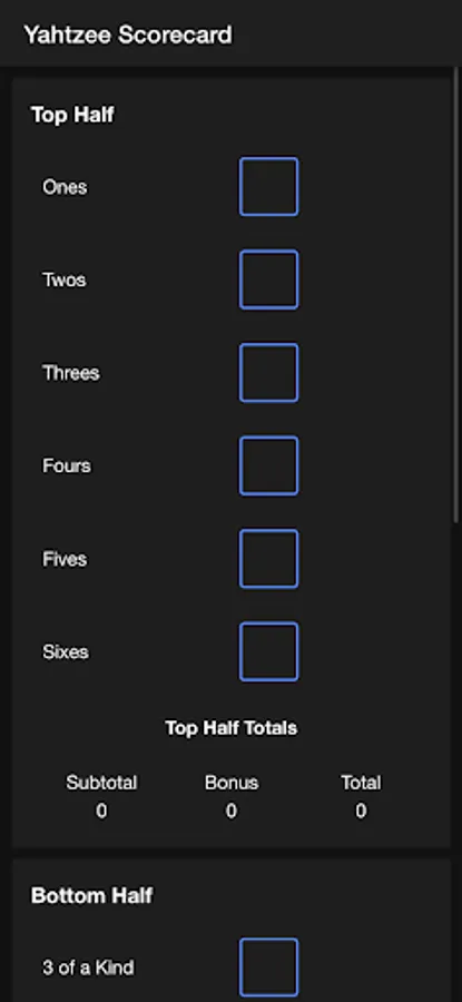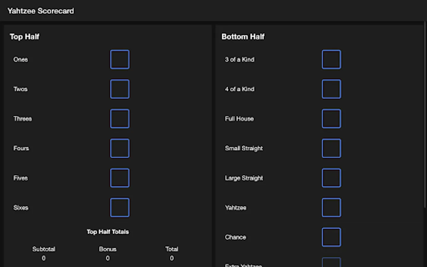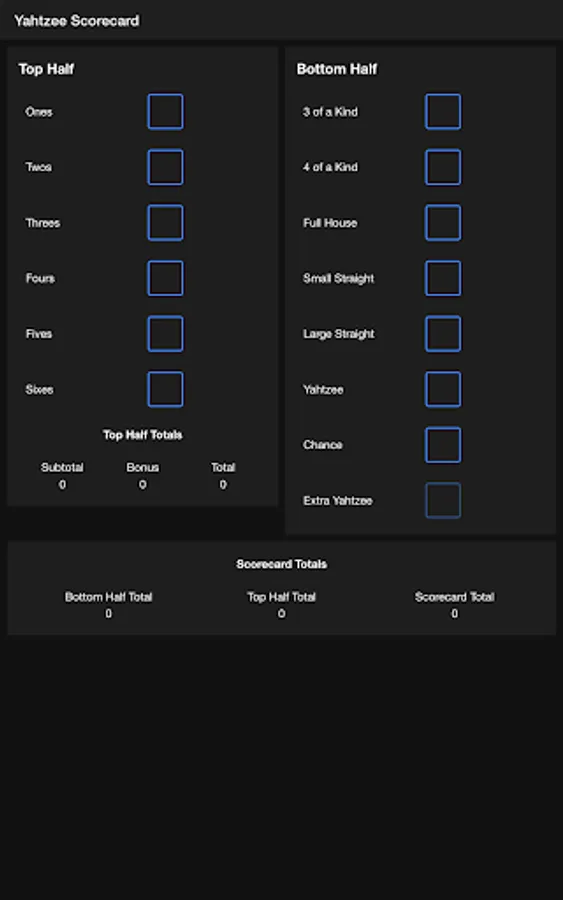 Scorekeeping app to automatically calculate your score in Yahtzee