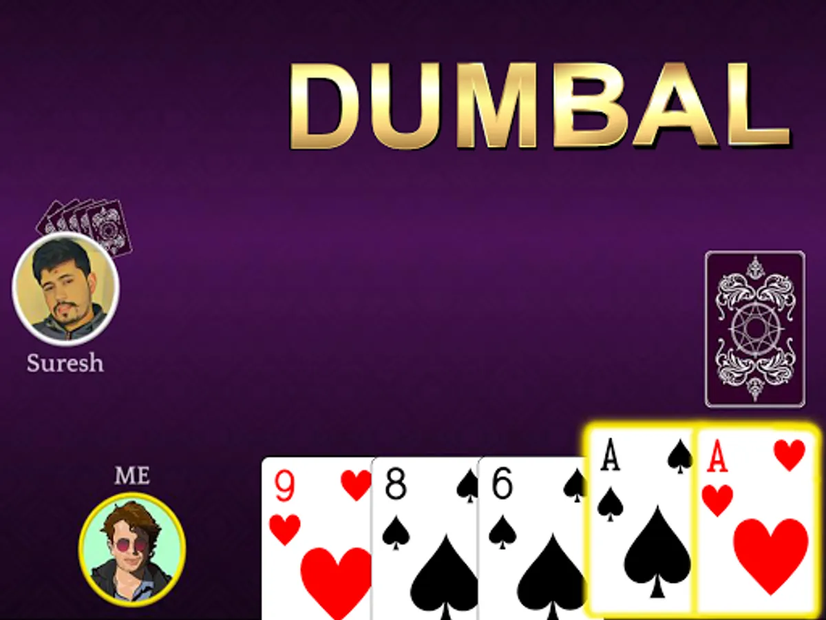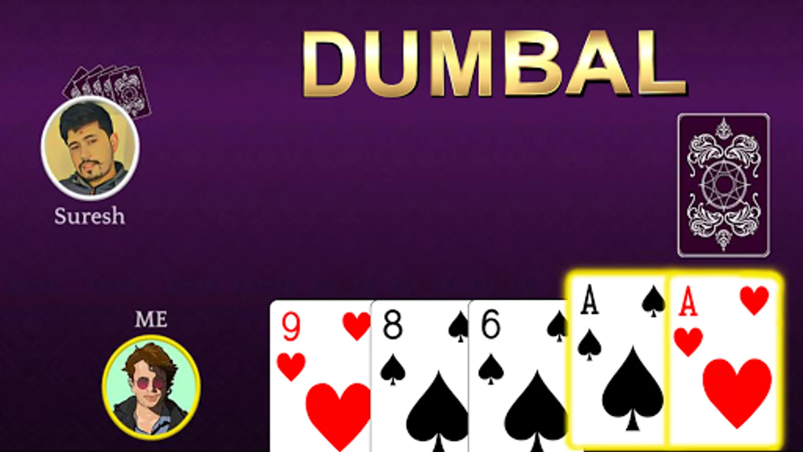 Dhumbal is a fun game played between 2-5 players with five cards distributed to each. The player should aim to have as a fewer sum of cards number as possible. You can throw pure sequences or same numbered cards to get the minimal value. One can show their cards when the total sum of cards number is less or equal to the required minimum value. Whoever has the lowest sum of cards number wins the game.
