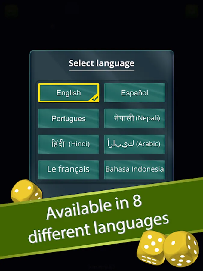 English, Hindi, Nepali, Spanish, Portuguese, French, Arabic & Indonesian languages are supported in this Ludo game.