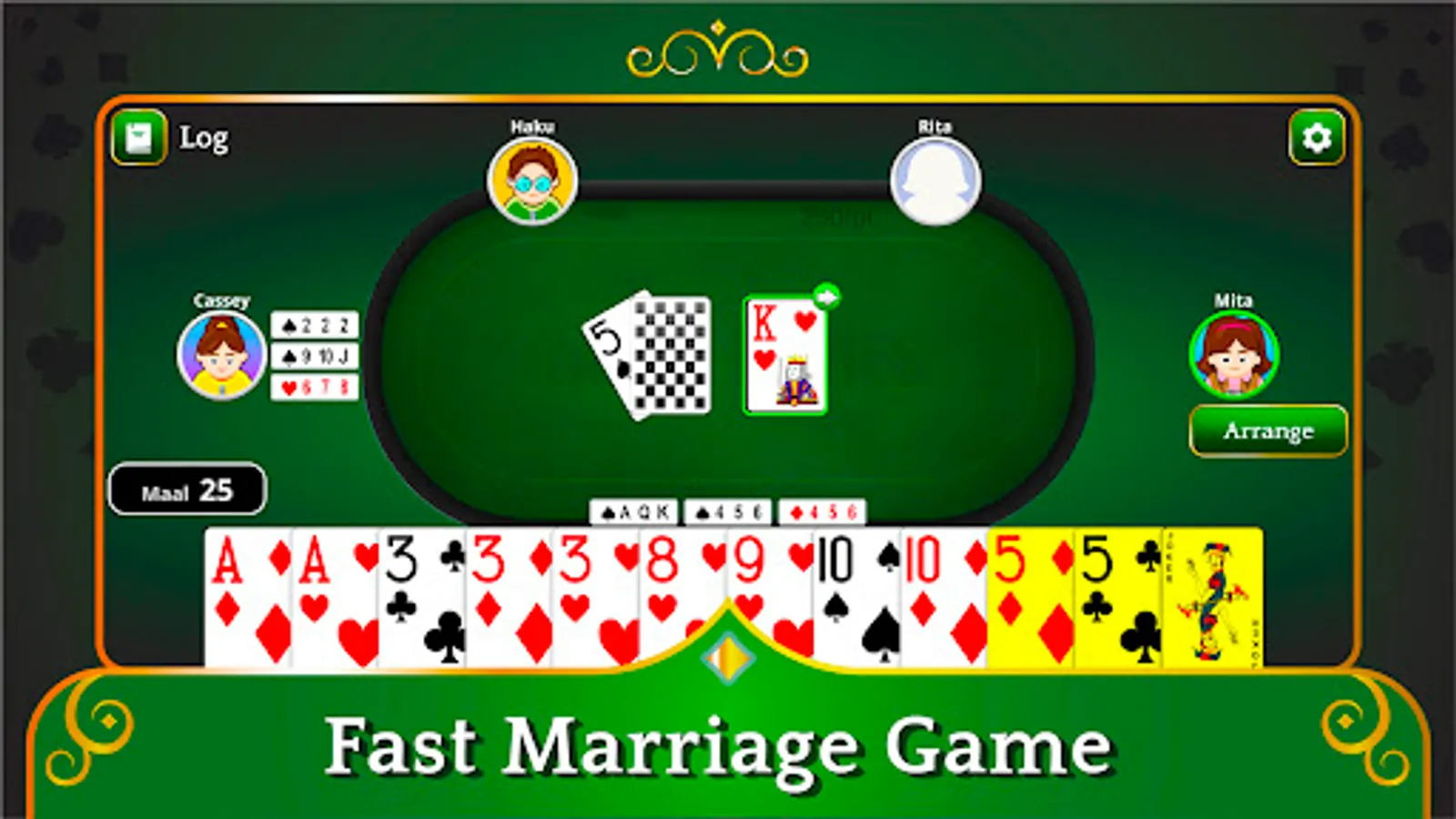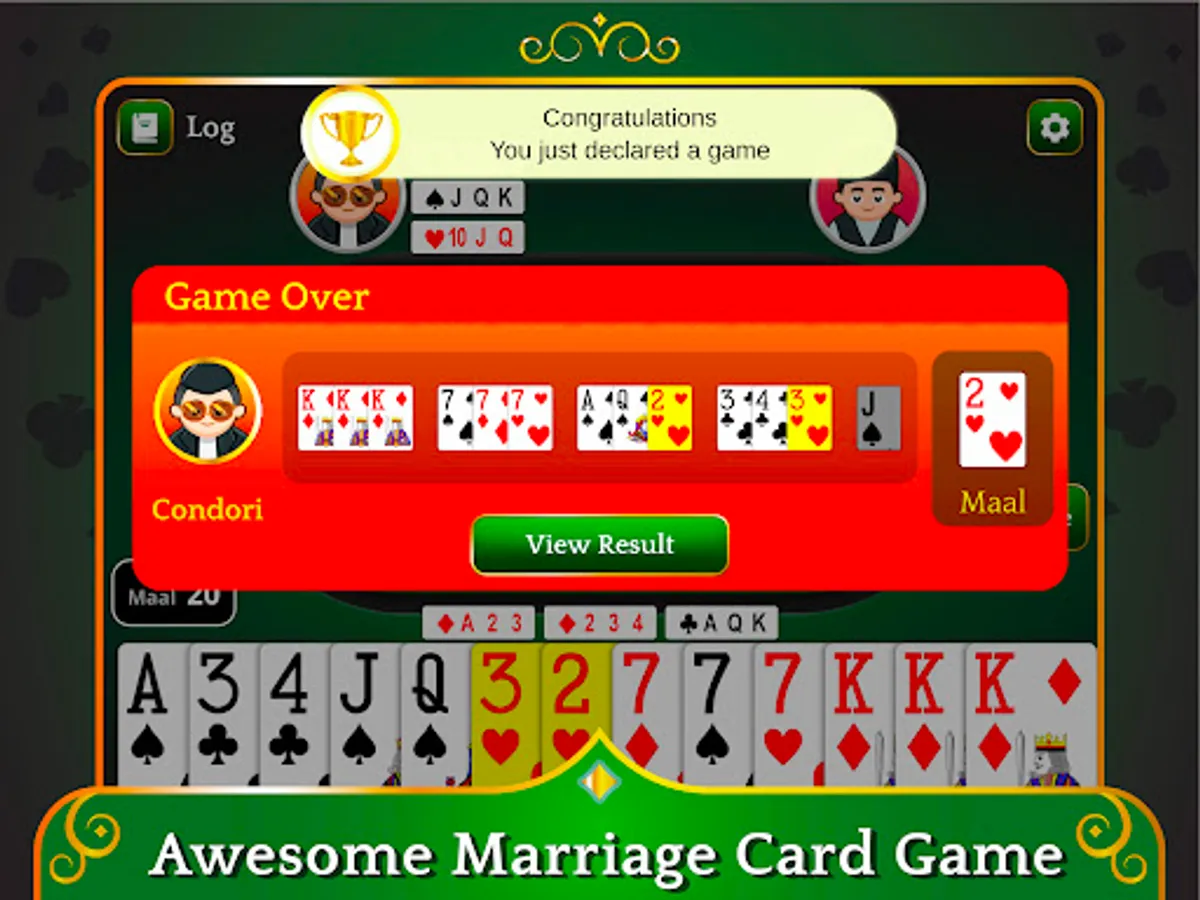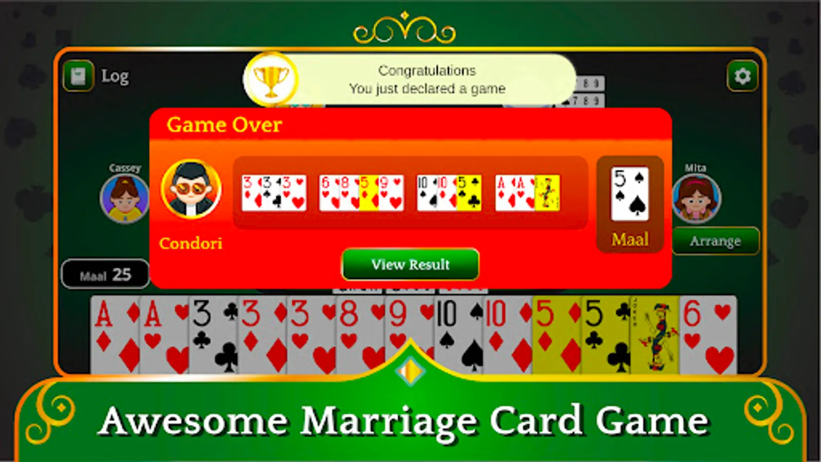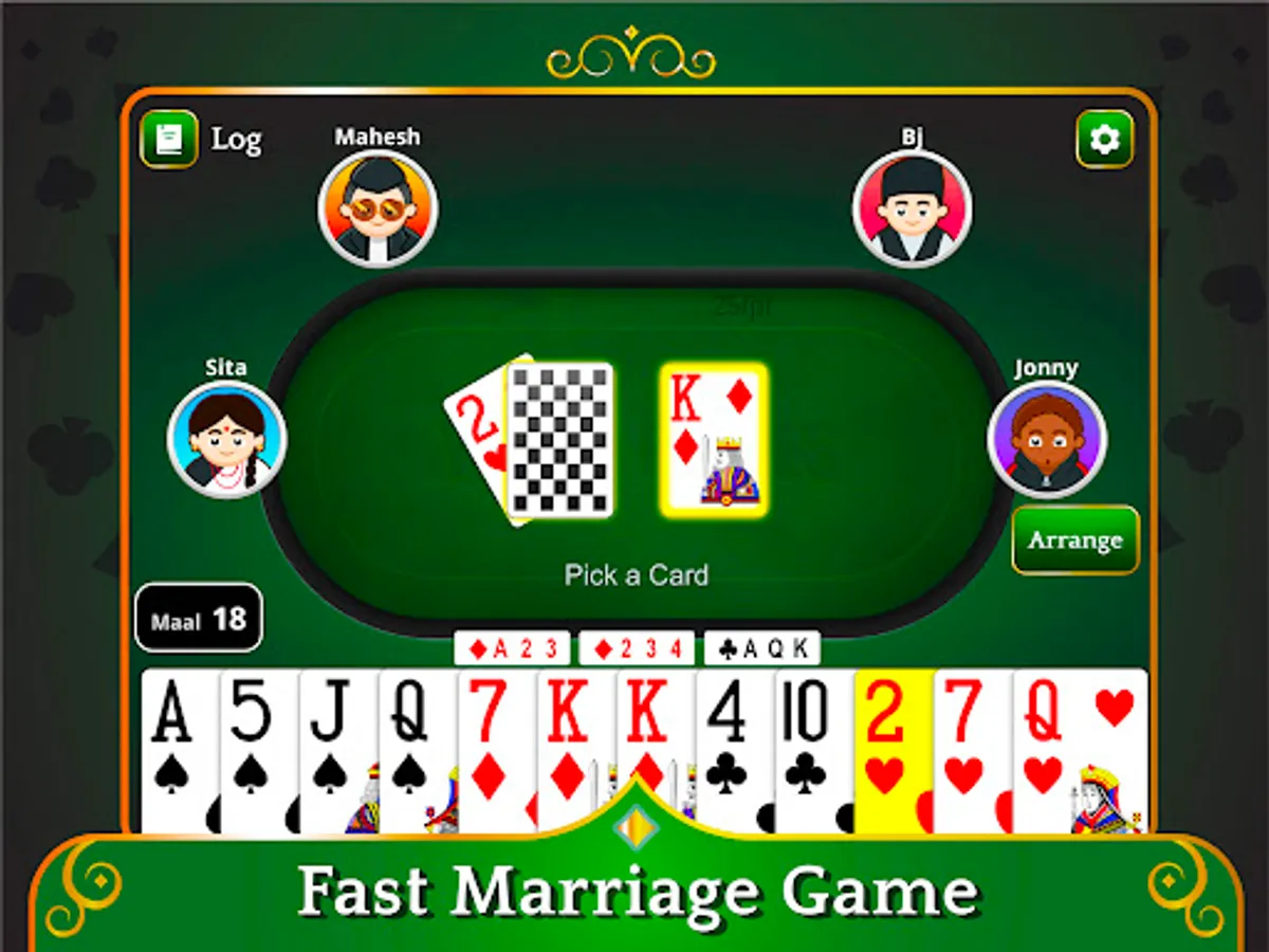 The marriage card game itself has multiple variants of the gameplay. Currently, there are 3 different versions of the game. Each variant is just a little different from the others. The rules are the most similar to the rummy games; the arrangement of sequences, sets and triplets are closely similar. Apart from the similarities, what makes Marriage different is the way the joker (maal) is shown. You can only know the joker cards once you have submitted the first set of cards.