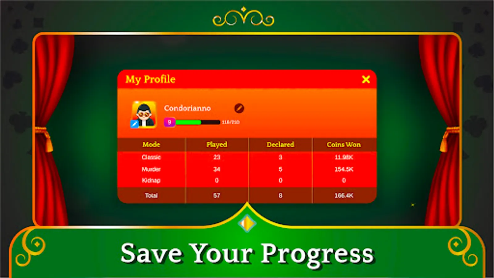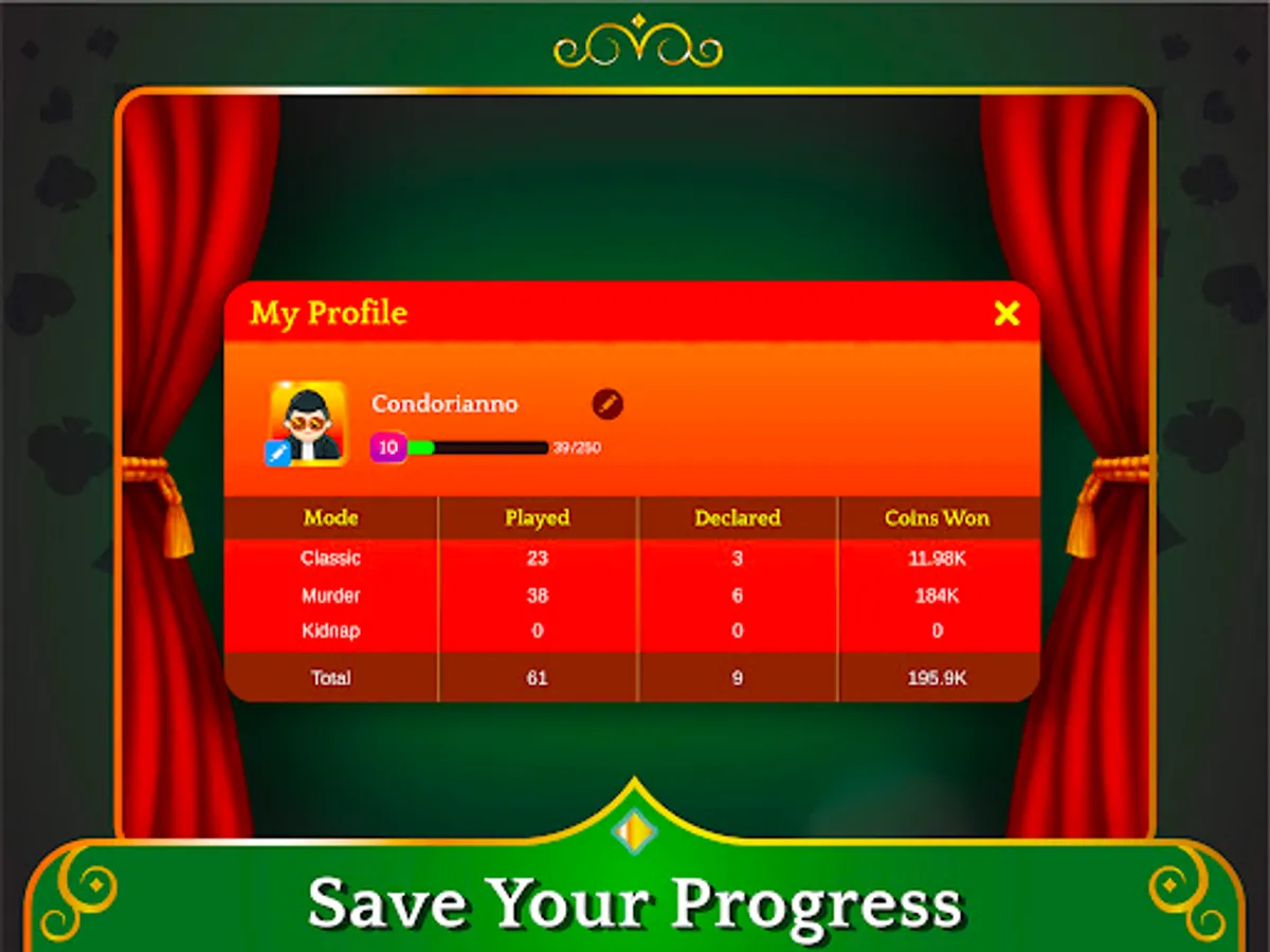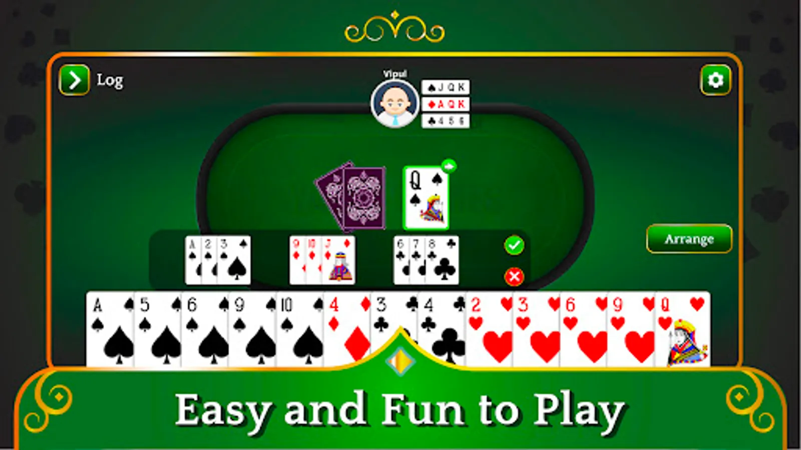 Unlike like the Indian rummy variant, the person who declares the game doesn't necessarily win the game. The rules of winning are a bit closer to that of Nepalese variant. The game automatically calculates the points for each player based on the value of Maal the player holds, and the number and values of unarranged cards in hand. Calculating the points manually is pretty hards, so the beginners are intimidated by it.