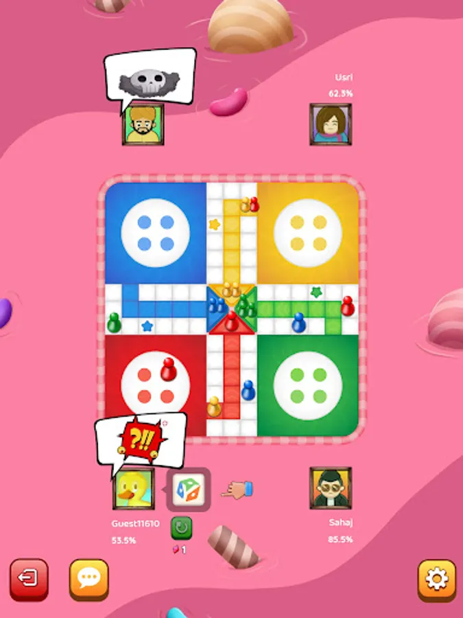 Ludo Multiplayer starts with a fixed number of tokens for each player in their starting box, which are then moved around the board by rolling the dice on their turn. Players must roll a six to place their token at the starting position. The first player to get all of their tokens inside the HOME wins the game. The game can get competitive, with players sending each other fun emotes and trying to outsmart each other on the board.