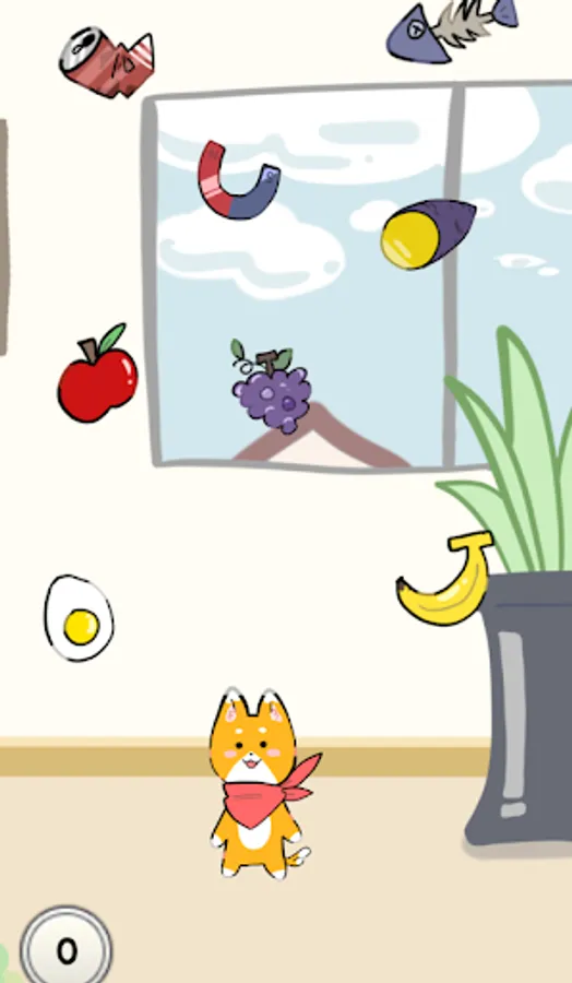 A game in which you get points by eating falling food while avoiding obstacles falling at a constant speed.