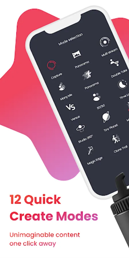Maximize your smartphone camera’s capabilities to create stunning short videos in seconds, with our easy-to-use 12 Quick Create modes. No more begging and bribing friends to take your pictures or videos.