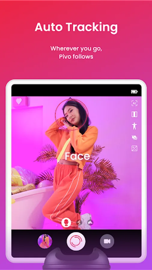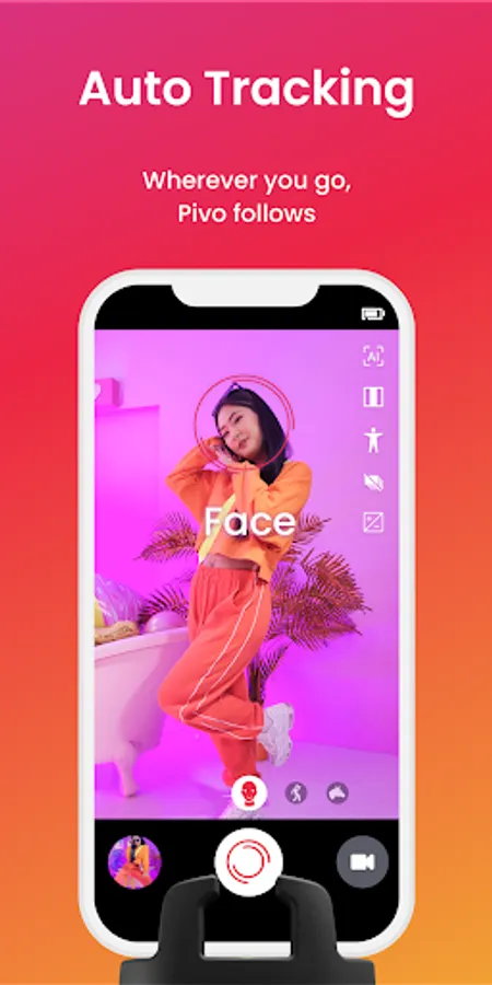 Wherever you go, Pivo follows. Auto Tracking always keeps you in frame so you'll never walk off screen and ruin another almost-perfect take again. Choose from Face Tracking, Body Tracking, Horse Tracking and Action Tracking for the ultimate mode to track anyone or anything!