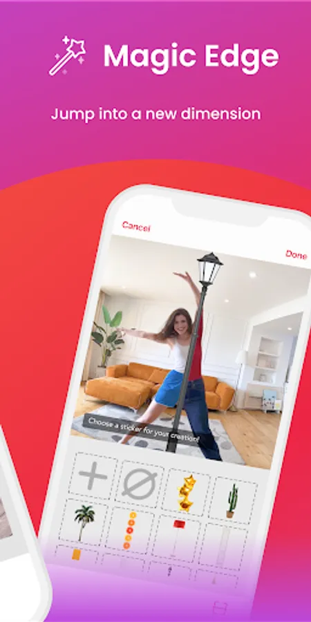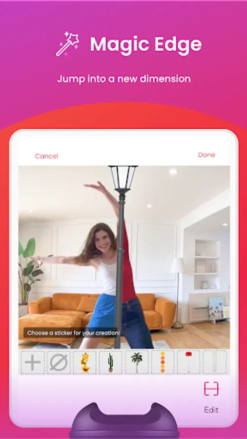Create mind-blowing transformations with a creative twist. With Magic Edge, you can teleport into a new outfit or even a new person! Add more to your Magic Edge with customized Pivo stickers.