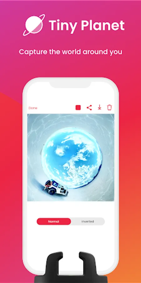 Capture the world around you, but now with you in it. Make wicked awesome Tiny Planets right from your smartphone like never before. Just put your smartphone on the Pivo Pod and let Pivo stitch each photo to create your own little globe.