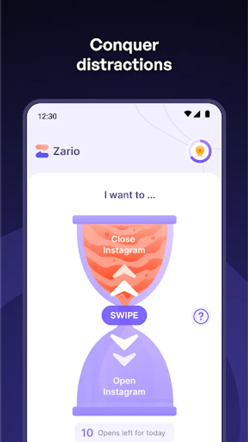 Zario is the ultimate top-rated app designed to empower you to reduce your screen time, supercharge your motivation, be more focused, and improve your digital wellbeing in the category of Motivation, Business & Productivity Software.