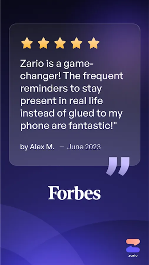"Zario helped me be more focused and set effective limits on screen time!" - Alissa.