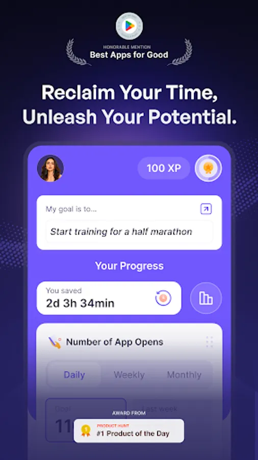 💪 Earn Rewards: As you establish healthier digital wellbeing habits, you'll earn rewards along the way.