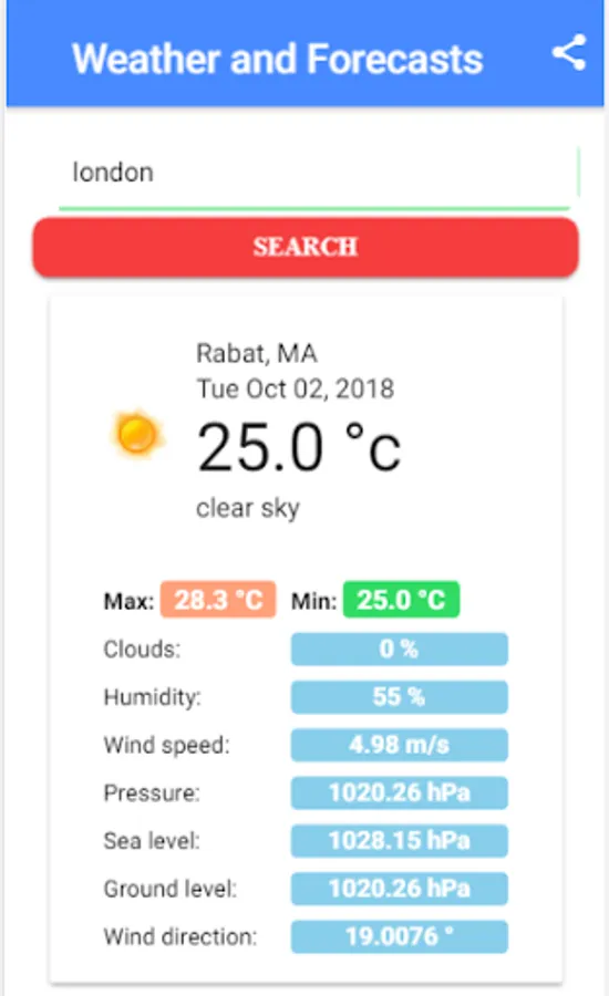 The special point is that the weather forecast app knows exactly where you are. The weather app welcome screen is weather information from your headquarters. It's incredible, is not it?