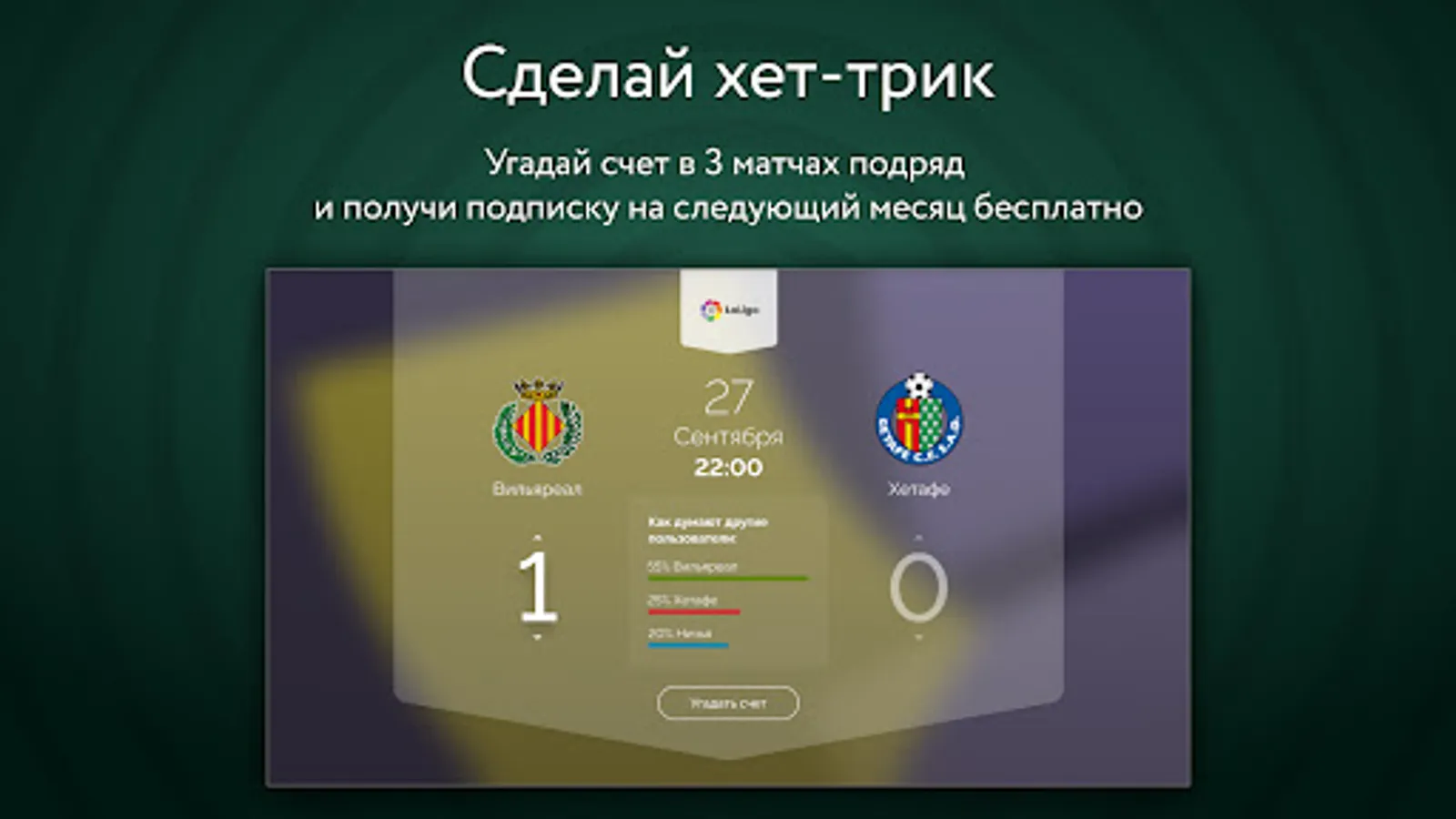 Guess the score in 3 matches in a row and watch football for free for a month!