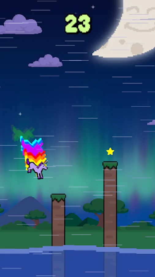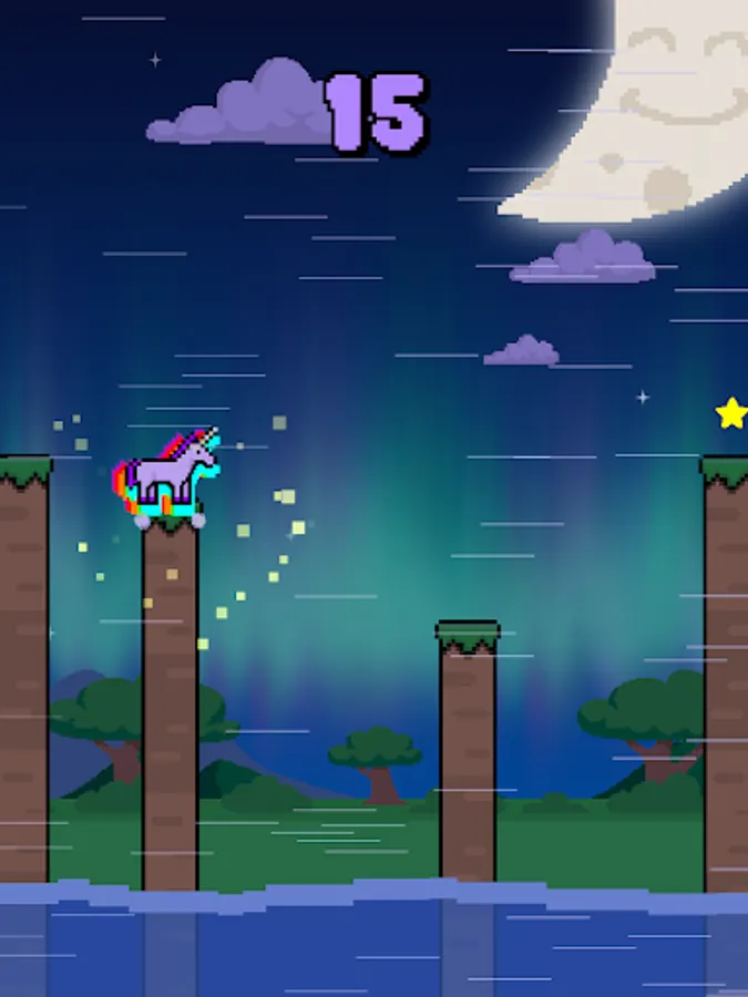 Can you get the high score? Tap and release to hop to the next spot -- go quick and collect a huge bonus, but don't fall into the water!